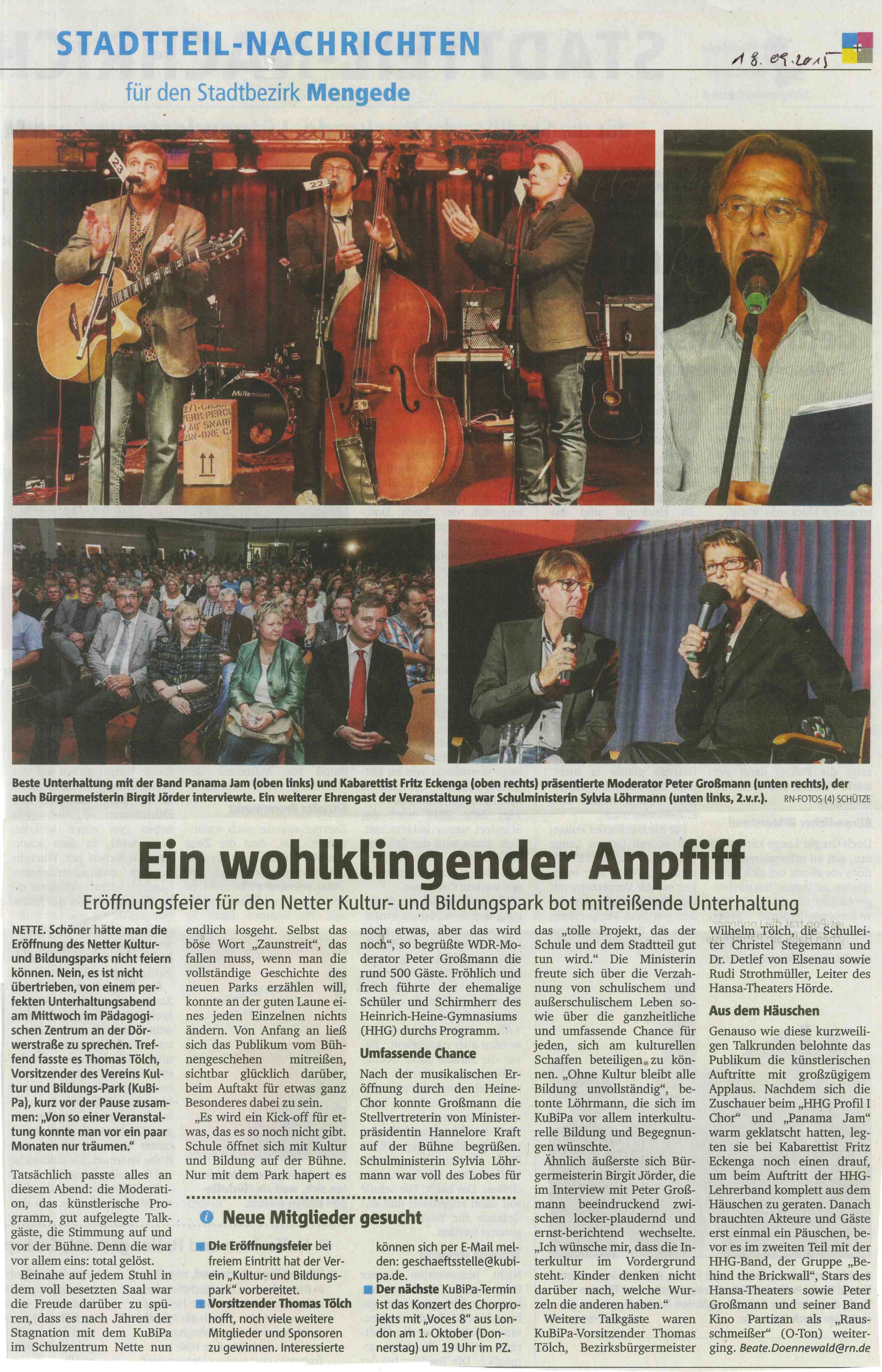 Ein wohlklingender Anpfiff – Eröffnungsfeier für den Netter Kultur- und Bildungspark bot mitreißende Unterhaltung
